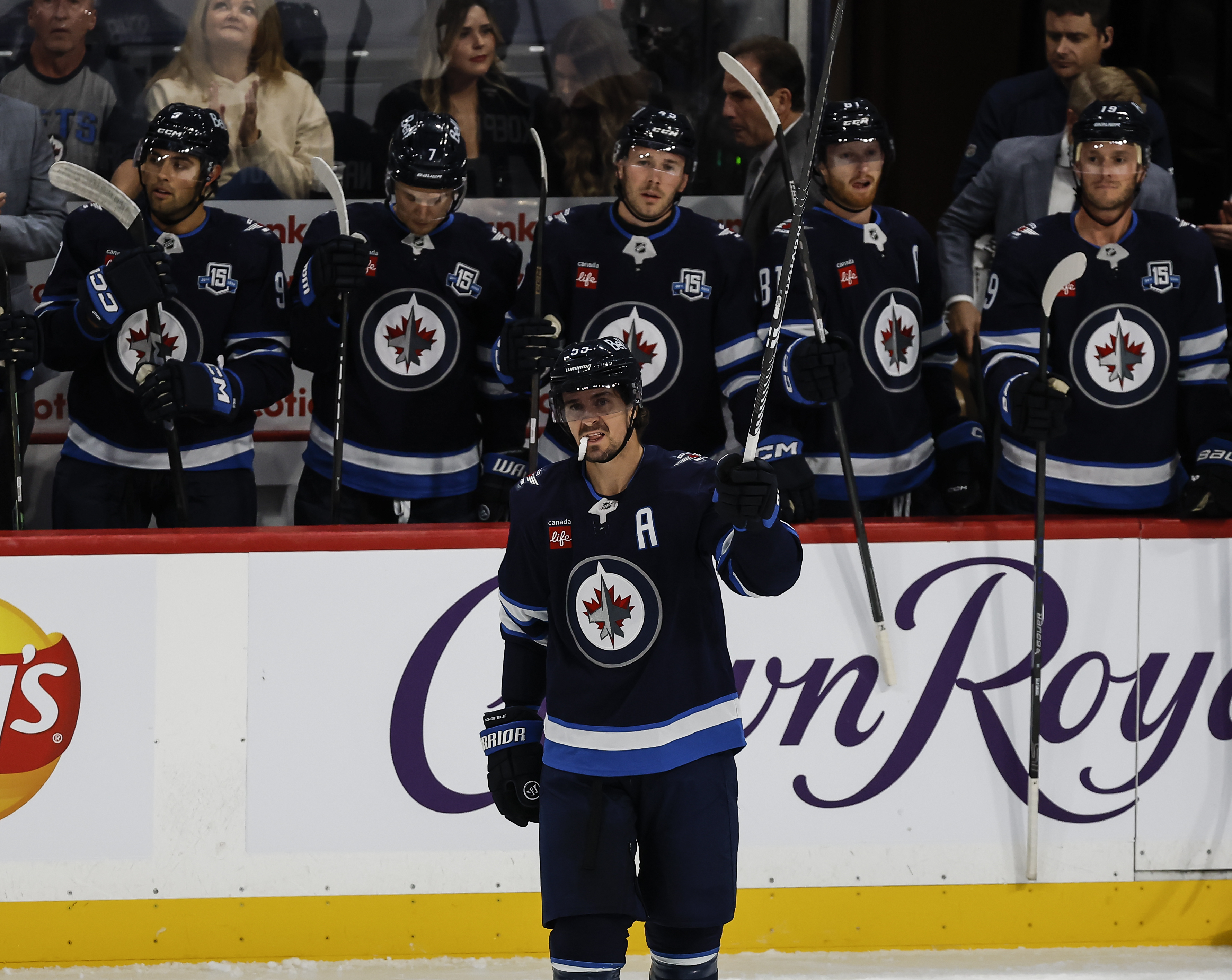 Mark Scheifele’s sixth goal of the season early in the first gave him 813 career points as a Jet, passing Blake Wheeler for the most in franchise history.